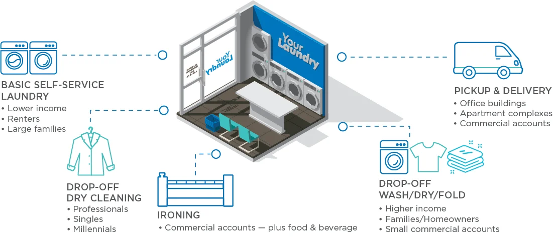 To capture business from mid- and high-income homeowners, professionals or local businesses, such as spas and motels, most vended laundries start by initiating drop-off wash/dry/fold and dry cleaning.