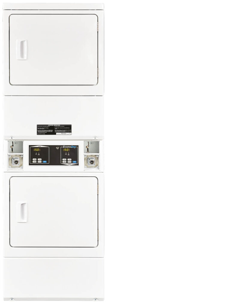 EconoDry stacked dryers offer maximum capacity per square foot, ideal for locations with limited space. Combining double-load drying efficiency with a compact footprint, they deliver reliable performance in busy settings. Backed by a 5/3-year warranty, these dryers are built for durability and ease of use.