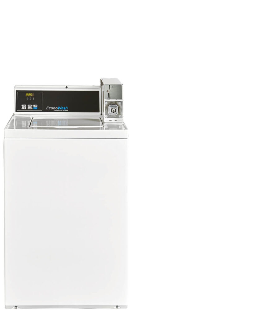 EconoWash top-load washers offer high efficiency and commercial durability, using just 27.3 gallons per load. Heavy-duty motors, oversized doors and a corrosion-resistant pump ensure long-lasting performance. A four-vane agitator delivers superior wash action with quiet, balanced cycles. Learn More.