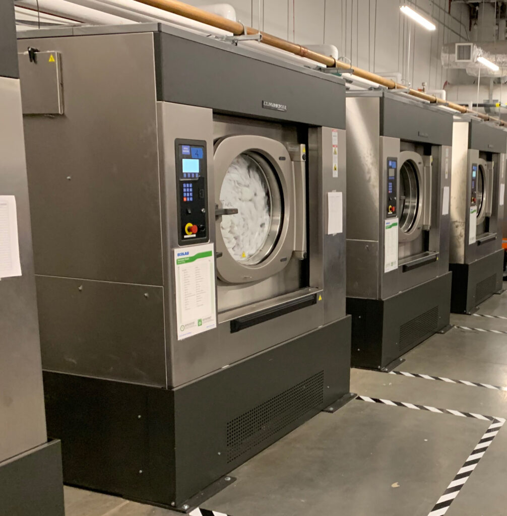 The dryers offer vacuum feeding and feature 130 pounds of drying capacity. “Ergonomic for operators, they complete a load of thick terry towels in less than 18 minutes using infrared moisture sensing,” said Pollnow. “The moisture sensing prevents over-drying and extends linen life, which is critical because linen inventory is very expensive.”