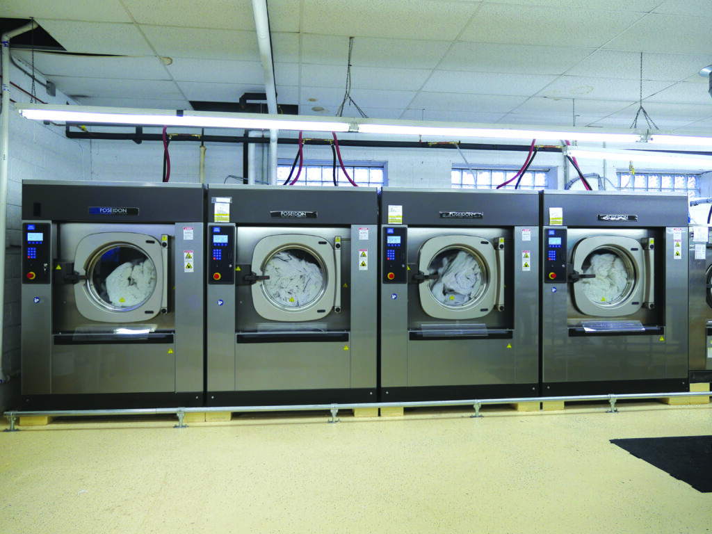 The wet cleaning machines are set up with 18 different programs for specific item types, including gowns, comforters, napkins, darks, spa sheets, chef coats, shirts and more. “Soaps and conditioners are automatically injected,” said Heflin, “and one wet cleaning machine has steam injection for cleaning chef and lab coats. This eliminates pre-scrubbing labor and time,” he said. “The quality is excellent and my customers have noticed a positive change.” Operators simply enter a program number, load the wet cleaning machine and press start. The machine automatically does the rest by combining the right chemicals, water temperatures, water levels, mechanical action, G-force, baths and cycle times.