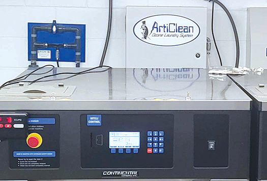 To ensure all laundry is properly sanitized, an Articlean Ozone System works in concert with the E-Series Washers to automatically combine ozone and cold water. The washers are high-speed, soft-mount machines, which don’t require bolt-down and reach extract speeds of 400 G-force. The high extract removes more moisture from every load, which in turn shortens dry time by as much as 50 percent. The result is improved productivity and lower natural gas costs.