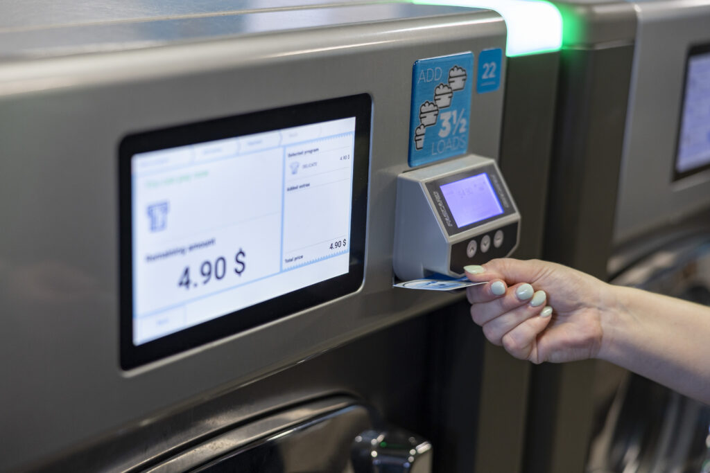 The second is a hybrid control. There are washers on the market with controls, like the GS Series with a Genius Control, that switch from customer-facing washing programs to more sophisticated programs used for WDF and commercial account orders. Keep in mind that most vended washers don’t offer commercial programming that allows for higher water temperature options, automatic chemical injection, delayed soaks and breaks between baths. But these features are a must for processing commercial account laundry!
